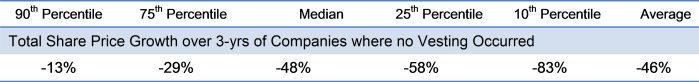 We would note, however, that the performance of those executives where vesting occurred was significantly better than those where vesting did not, as can be seen in the distribution below.