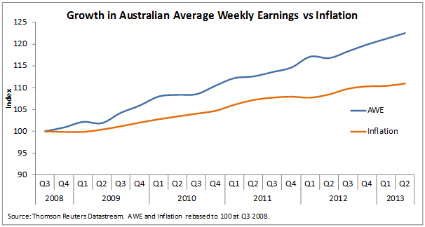 1. Australian wages have outstripped inflation in recent years.